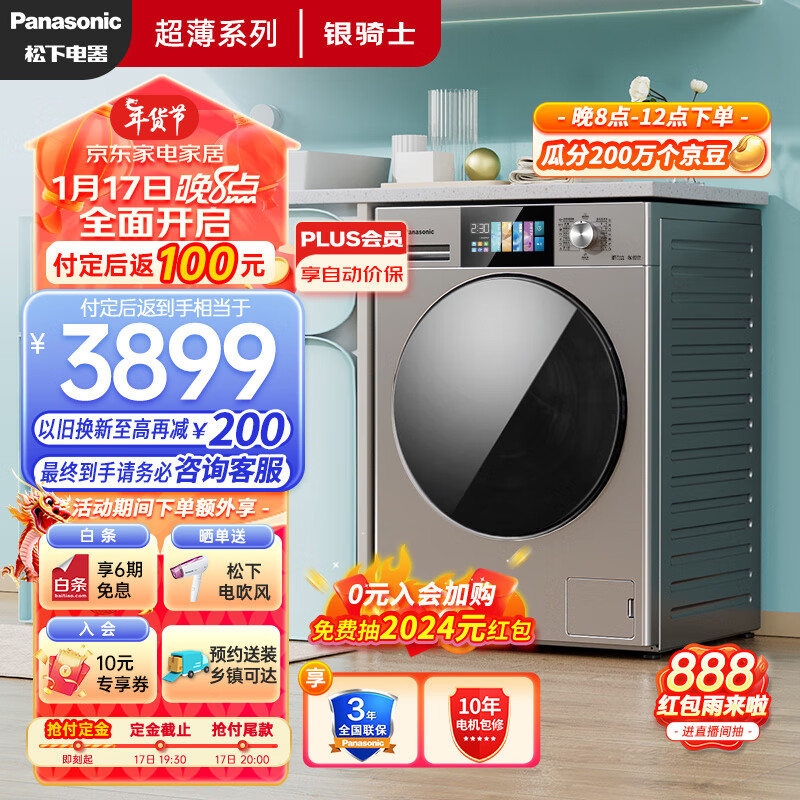 松下(Panasonic)滚筒洗衣机全自动 超薄全嵌【银骑士豪华版】10公斤 温水泡沫净 彩屏 活性银 智能投放XQG100-811Q价格:4689.00元!