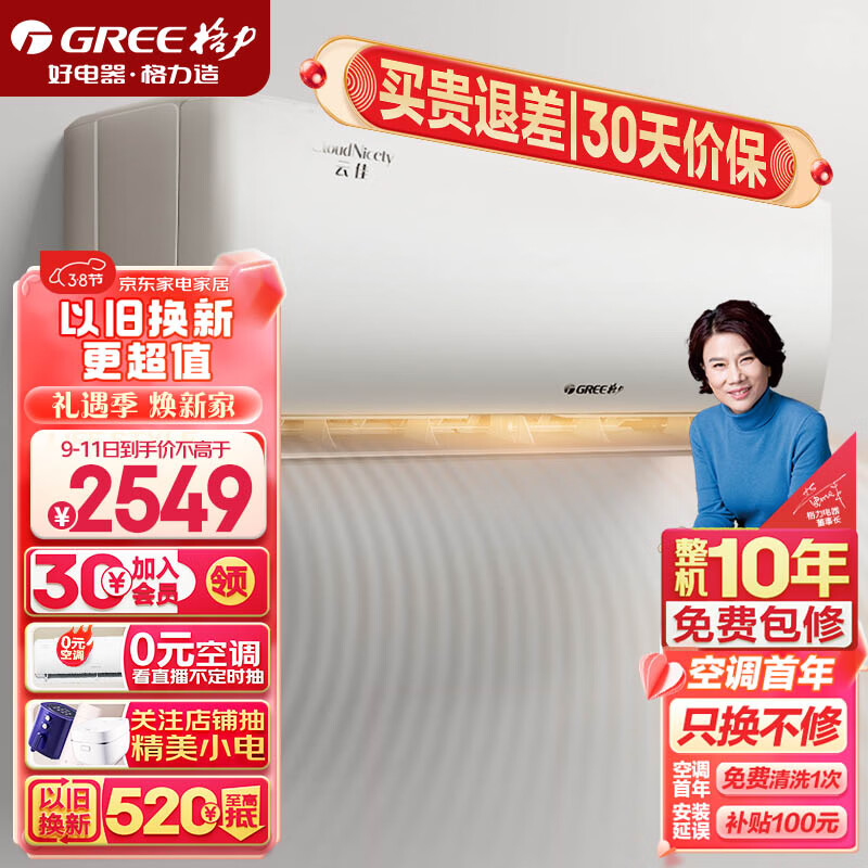 格力(GREE)大1匹 云佳 三级能效 变频冷暖 自清洁 壁挂式卧室空调挂机(KFR-26GW/NhGc3B 珊瑚玉色)价格:2549.00元!