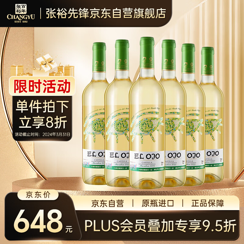张裕先锋 爱欧公爵之眼干白葡萄酒 750ml*6 整箱装 进口红酒价格:648.00元!