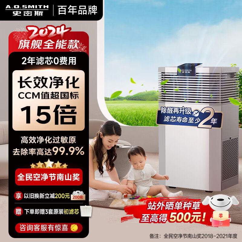 史密斯(A.O.SMITH)除甲醛空气净化器家用 分解除醛除菌除异味PM2.5除过敏原除雾霾 EB88 智能托管 KJ440F-MA-B12-PF价格:5398.00元!