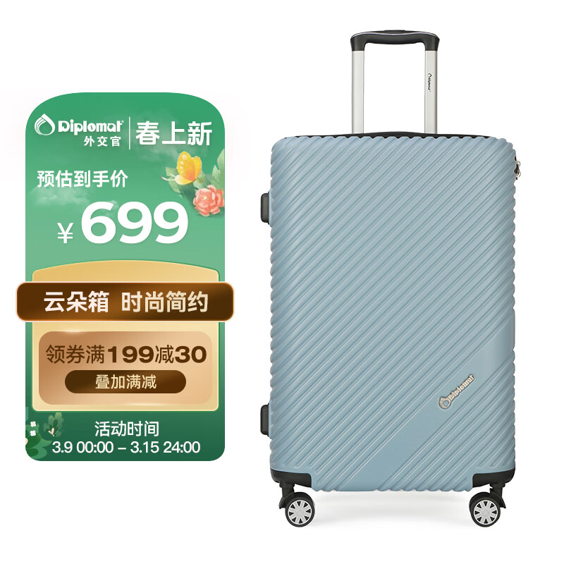 Diplomat外交官行李箱24英寸大容量拉杆箱子男密码云朵旅行箱女TC-23253蓝价格:899.00元!