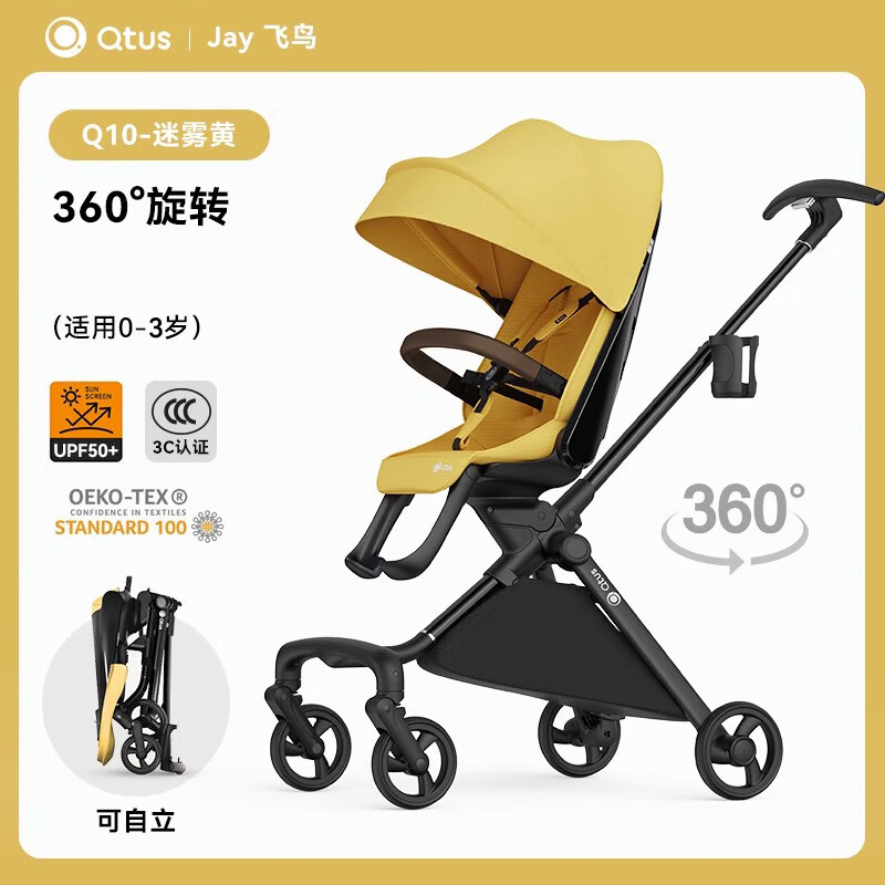 昆塔斯(Quintus)Q10 Jay飞鸟360度双向高景观婴儿推车轻便可折叠遛娃神器 迷雾黄价格:2380.00元!
