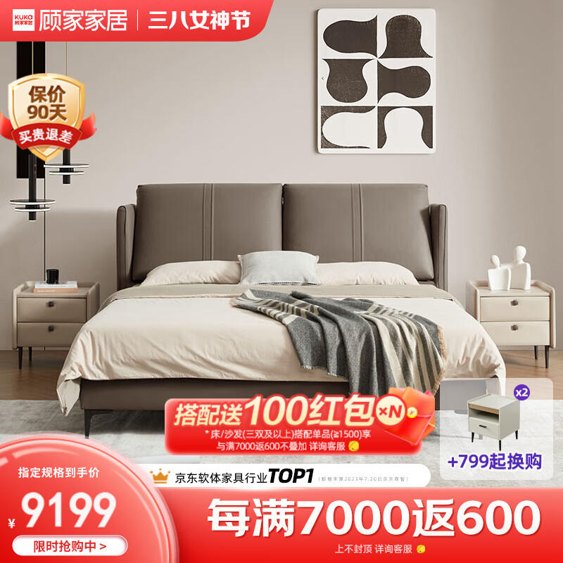 顾家家居(KUKA)手动无极纳帕皮床双人床192+亚运垫0099D山野咖1.8米价格:9199.00元!