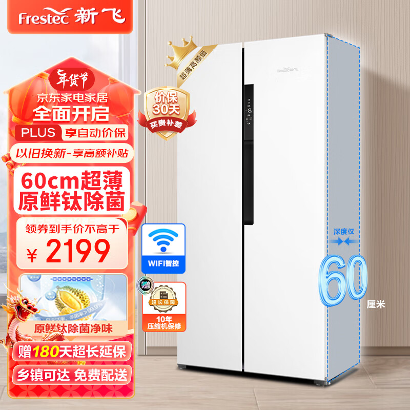 新飞(Frestec)60cm系列450升超薄对开门双开门冰箱多维风冷无霜家用除菌电冰箱 BCD-450WK9HT素雪白价格:2299.00元!