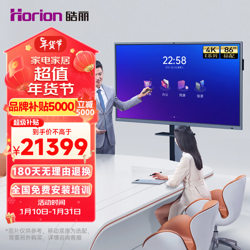 皓丽智能会议平板一体机86英寸触控会议电视企业版4K智慧屏投影一体机商业显示会议室大屏培训E86标配价格:25649.00元!