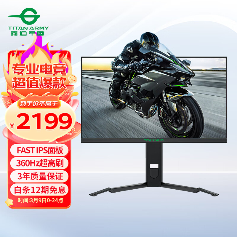 泰坦军团24.5英寸360Hz 1ms(GTG) FAST IPS Type-C 65W HDR400 可升降底座电脑显示器 电竞游戏屏幕 P25M2K价格:2399.00元!