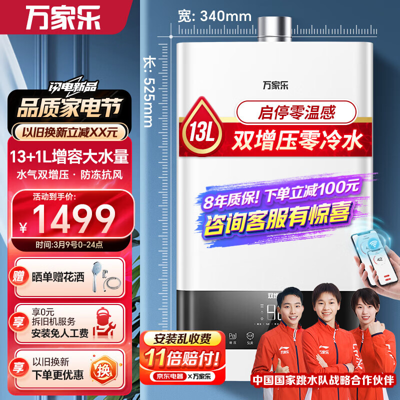 万家乐(Macro)燃气热水器SL1双增压增容零冷水天然气WIFI远控 启停零波动 四季随温感 13L 双增压零冷水价格:1571.00元!