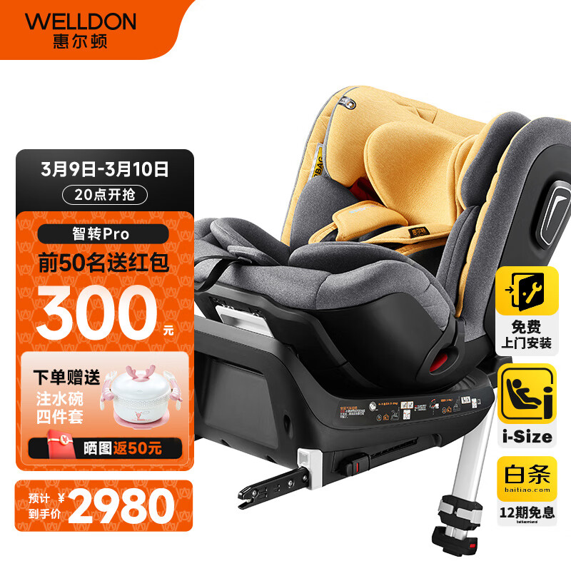 惠尔顿(Welldon)儿童座椅 0-7岁 360度旋转 i-Size认证 四大智能监测 智转PRO价格:2980.00元!
