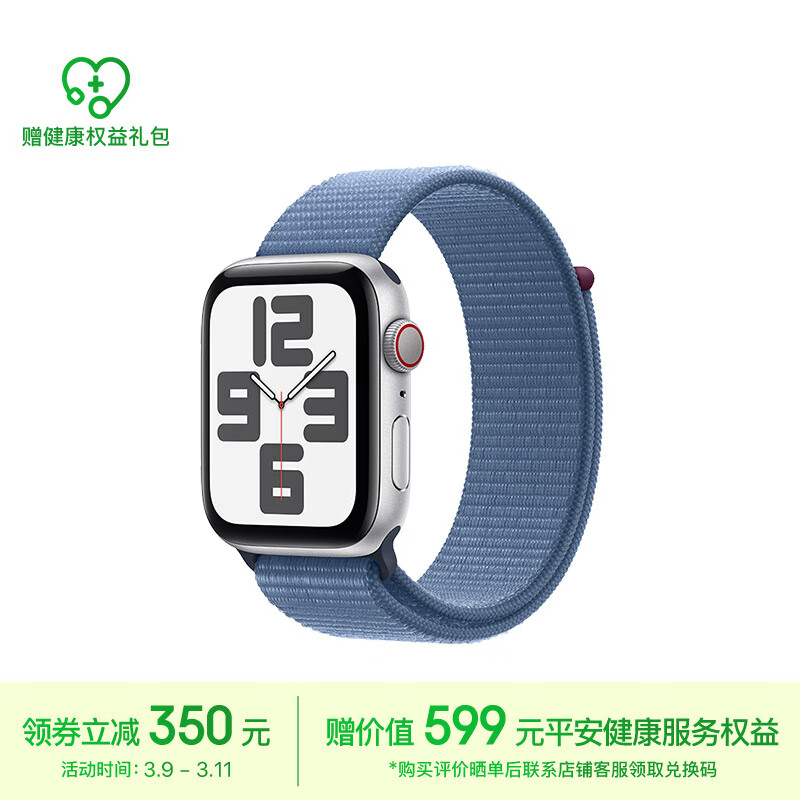 Apple/苹果 Watch SE 2023款智能手表GPS+蜂窝款44毫米银色铝金属表壳凛蓝色回环式运动型表带MRGG3CH/A价格:2499.00元!
