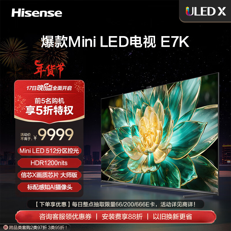 海信电视85E7K 85英寸 ULED X Mini LED 512分区 AI摄像头超感知 智慧屏 液晶智能平板电视机 以旧换新价格:9999.00元!
