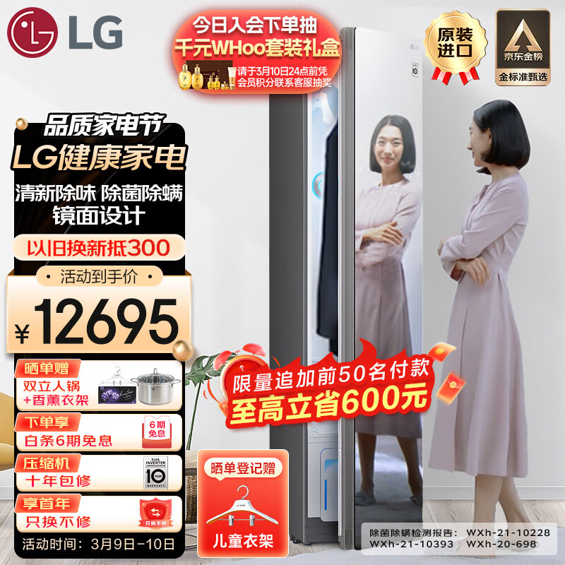 LGStyler 奂影系列衣物护理机 进口蒸汽除皱烘干塑形 智能除菌衣物消毒烘干机 3件衣服+1条裤子 S3MF价格:13295.00元!