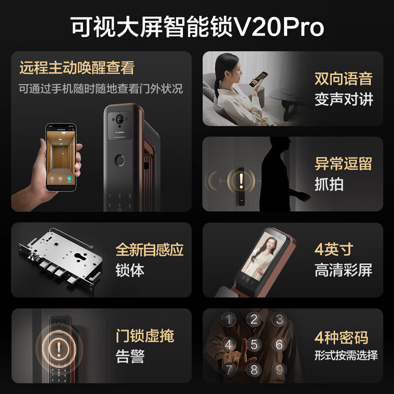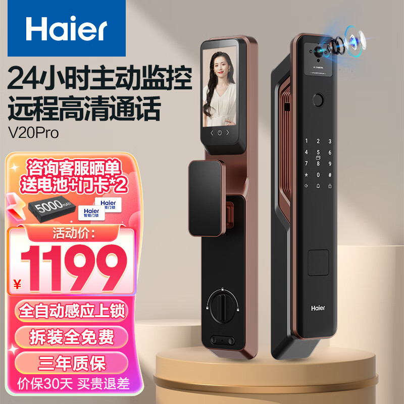 海尔(Haier)智能门锁指纹锁防盗门智能锁带可视猫眼摄像头指纹密码锁电子锁门锁HFA-20V-U1(Pro)免费安装价格:1199.00元!