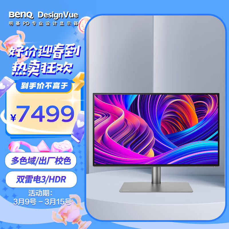 明基(BenQ)PD2725U 27英寸IPS 4K超高清HDR窄边框 10bit多色域专业色彩设计绘图电脑显示器(双雷电3)价格:7999.00元!