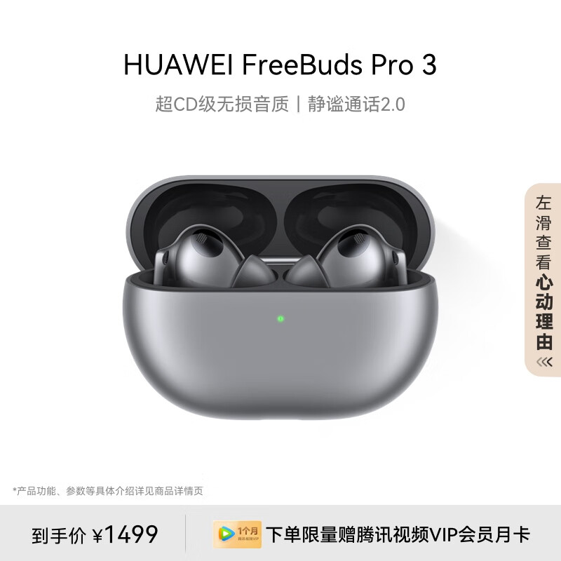 华为(HUAWEI)FreeBuds Pro 3 真无线蓝牙降噪耳机 入耳式动态降噪/游戏影音/离线查找/适用Mate 60 冰霜银价格:1449.00元!