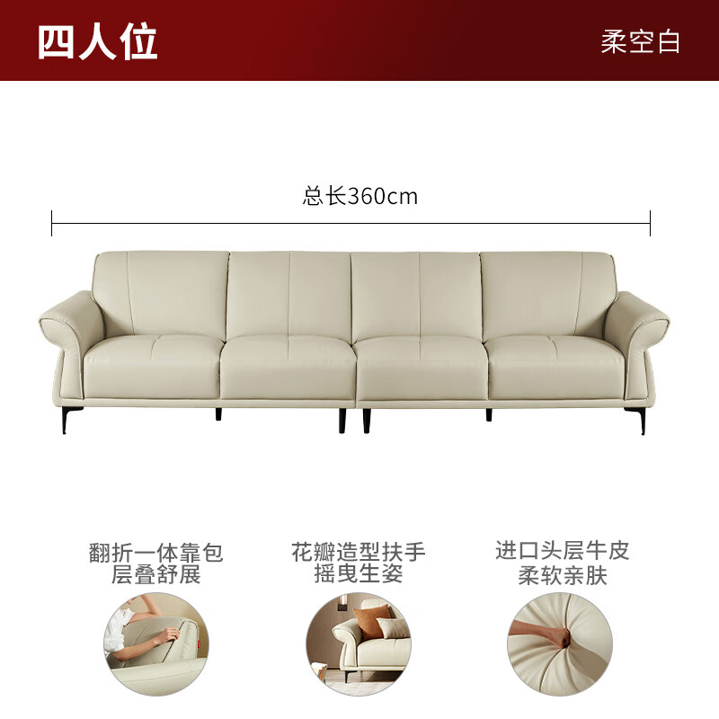 顾家家居(KUKA)现代简约头层牛皮沙发客厅沙发小户型1197【柔】四人位 价格:6299.00元!