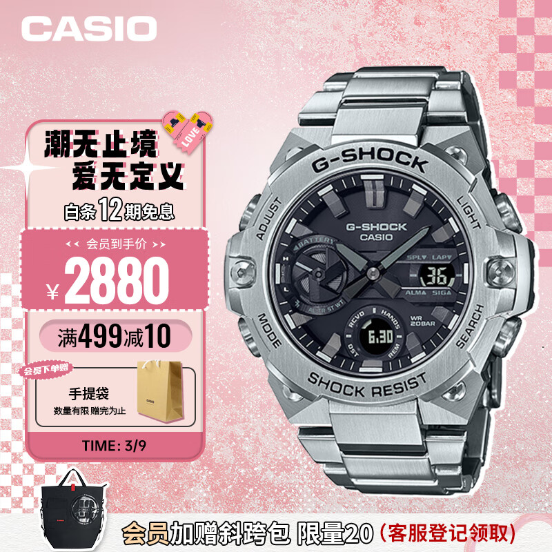 卡西欧(CASIO)手表男士G-SHOCK钢铁坚毅之心运动电子日韩表礼物GST-B400D-1A价格:2890.00元!