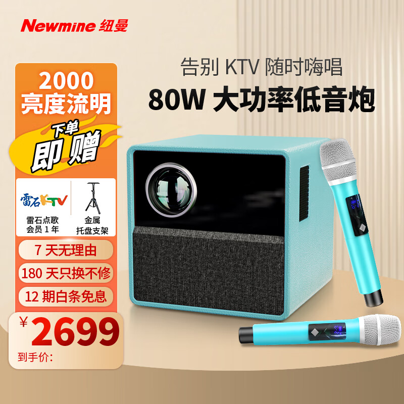 纽曼T68 投影仪家用 卧室K歌投影机 卡拉OK一体机办公会议宣讲 高端智能投影白天直投 高亮智能语音版价格:2999.00元!