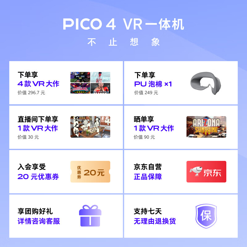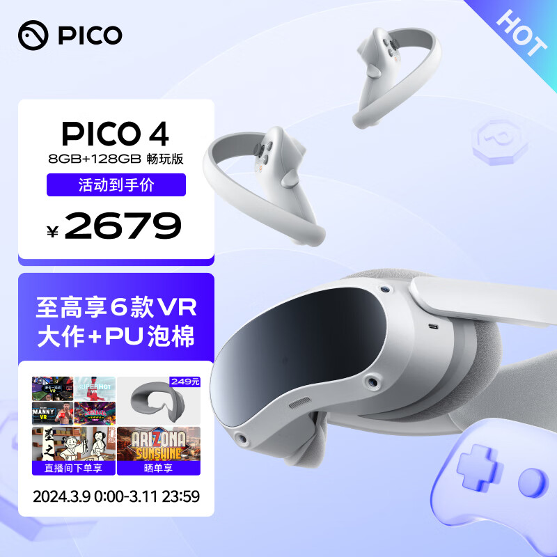 PICO抖音集团旗下XR品牌PICO 4 VR 一体机 8+128G【畅玩版】VR眼镜智能游戏机visionpro空间设备AR价格:2799.00元!