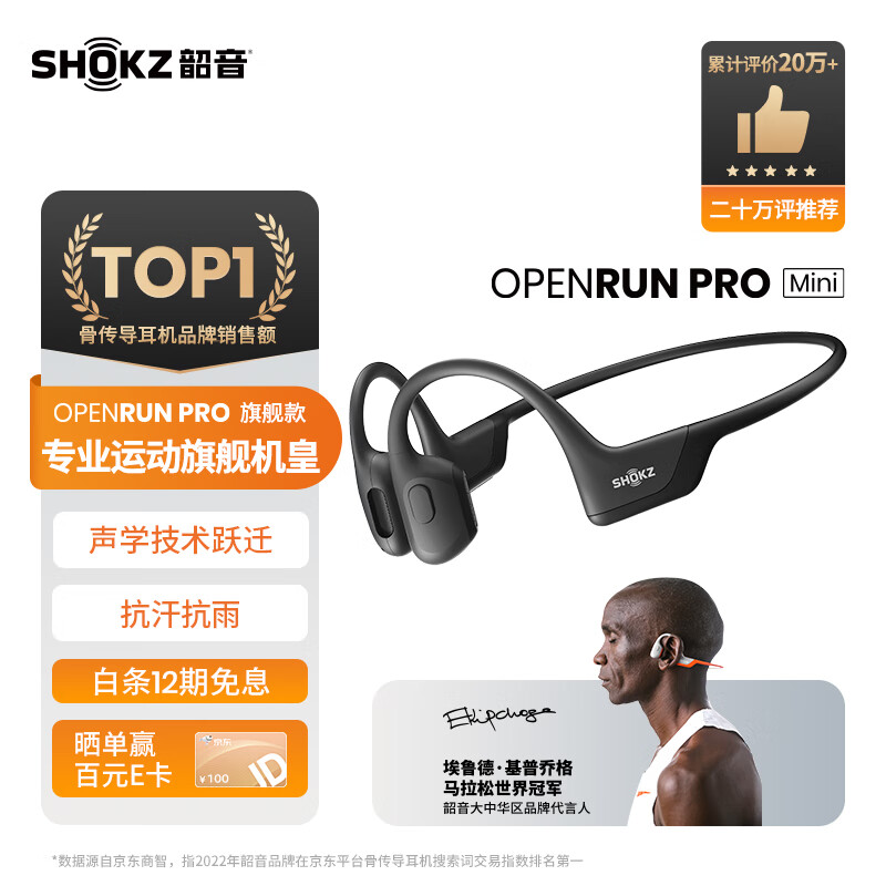 韶音(SHOKZ)OpenRun Pro骨传导蓝牙耳机开放式耳机运动无线耳骨传导耳机跑步骑行不入耳佩戴S810/S811 【适合女士和青少年使用】mini黑价格:1298.00元!