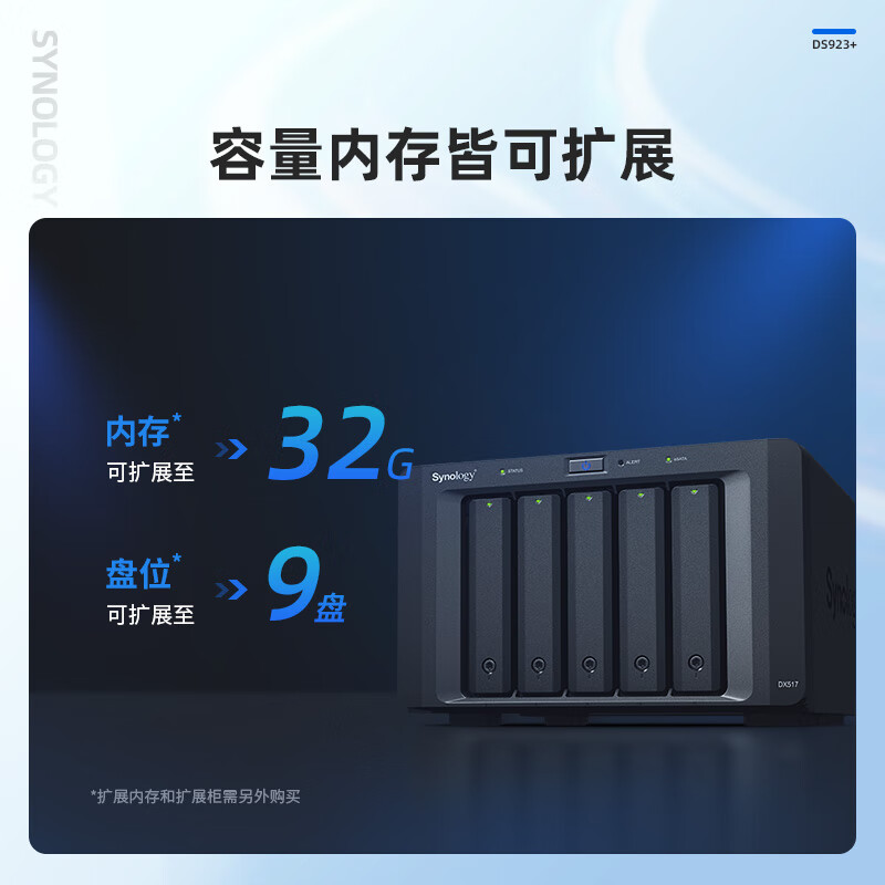群晖(Synology)DS923+ 4盘位 万兆扩展 NAS网络存储服务器 文件共享 自动备份 私有云 团队云盘价格:4950.00元!