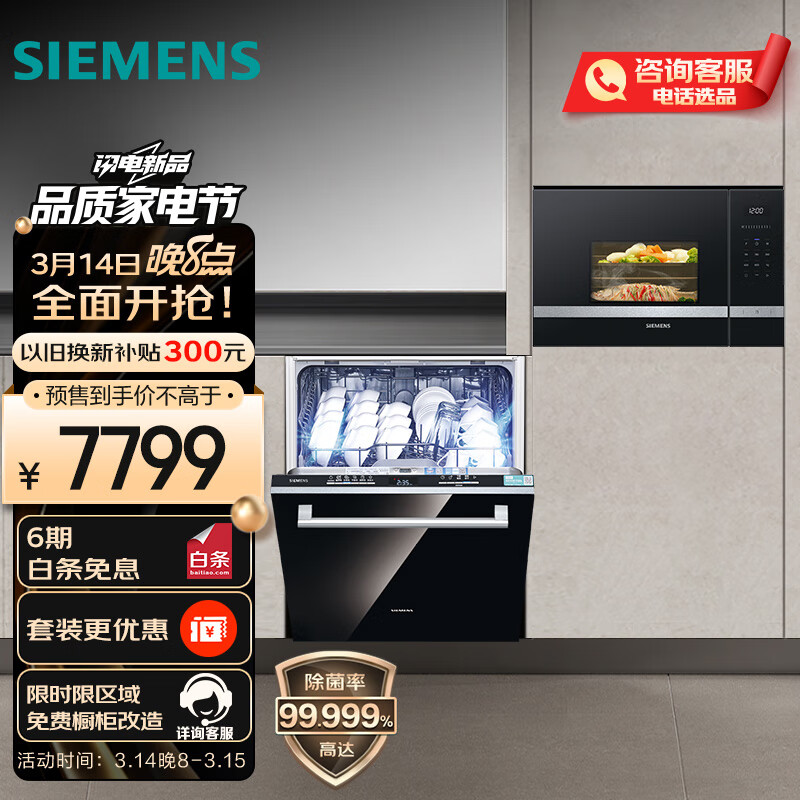 西门子14套大容量嵌入式家用洗碗机智能开门烘干 嵌入式微波炉组合套装 636Pro(含黑门板)+BE525价格:7799.00元!