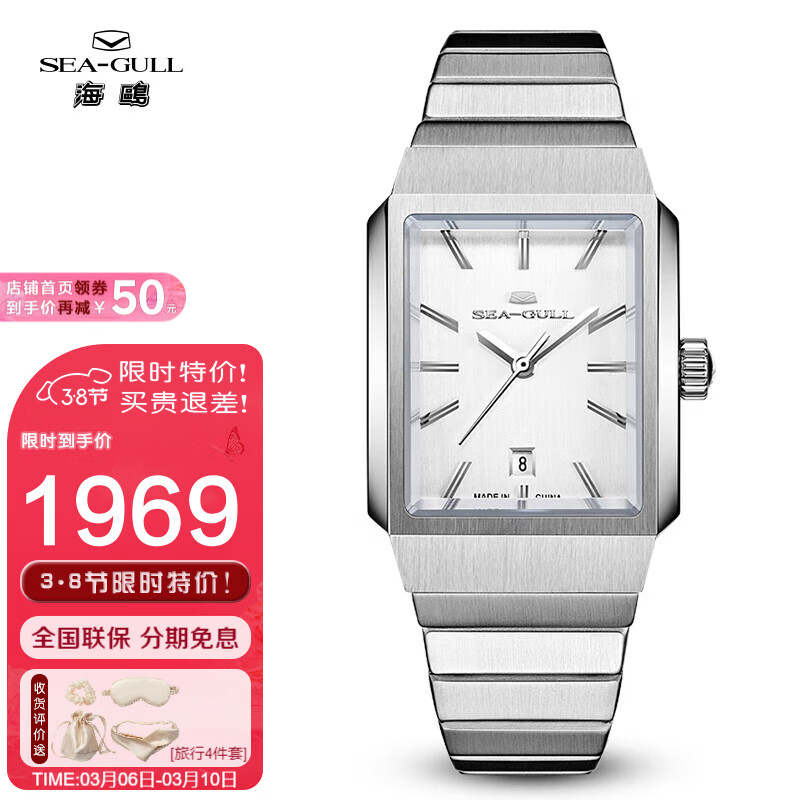 海鸥(SEAGULL)手表女士自动机械表 送女友礼物 日历腕表826.12.6169L(冰糖块)价格:2249.00元!