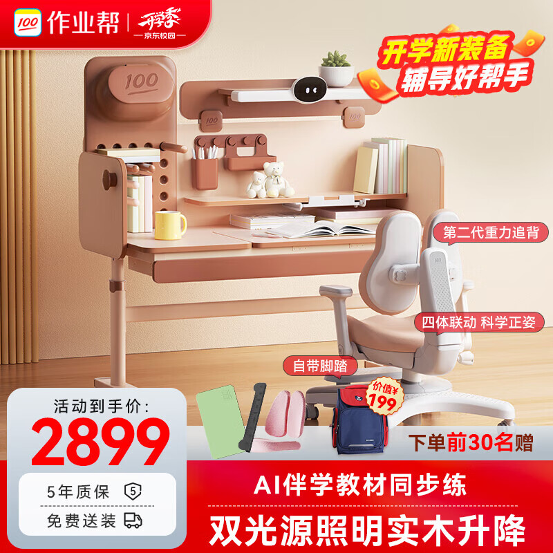 作业帮辅导家AI伴学灯X1升级款 儿童学习桌椅书桌追背椅pro1.2m巧克力价格:2899.00元!