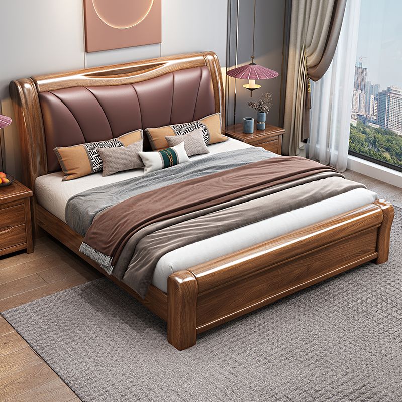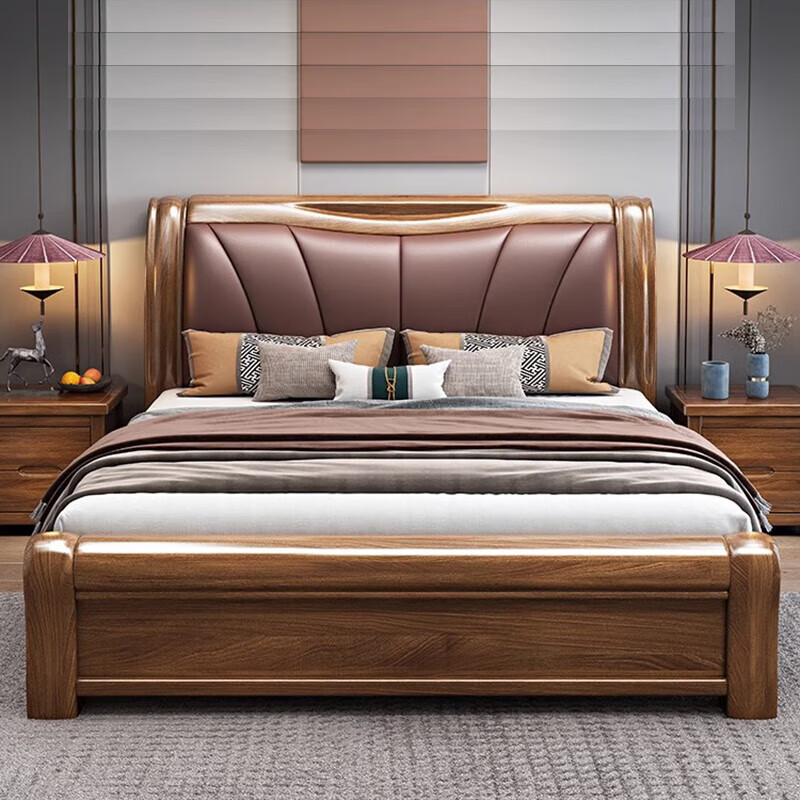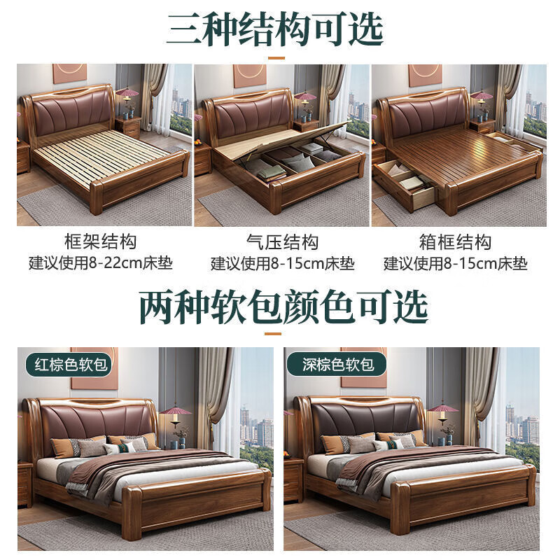优卡吉胡桃木新中式主卧双人床软包储物床MJ-2201# 1.5米框架床+柜*2价格:2599.00元!