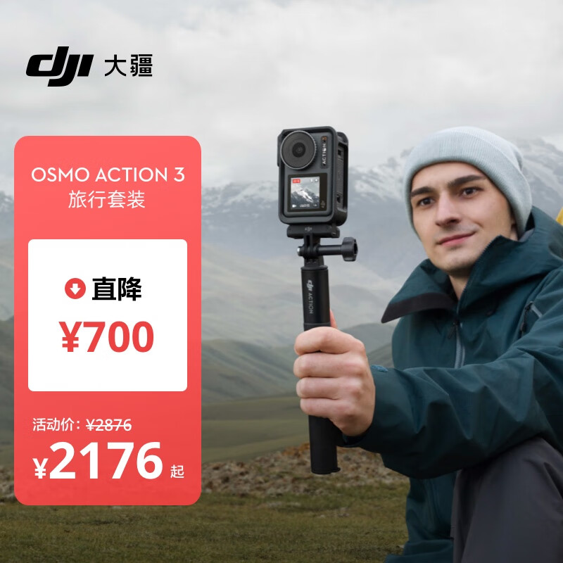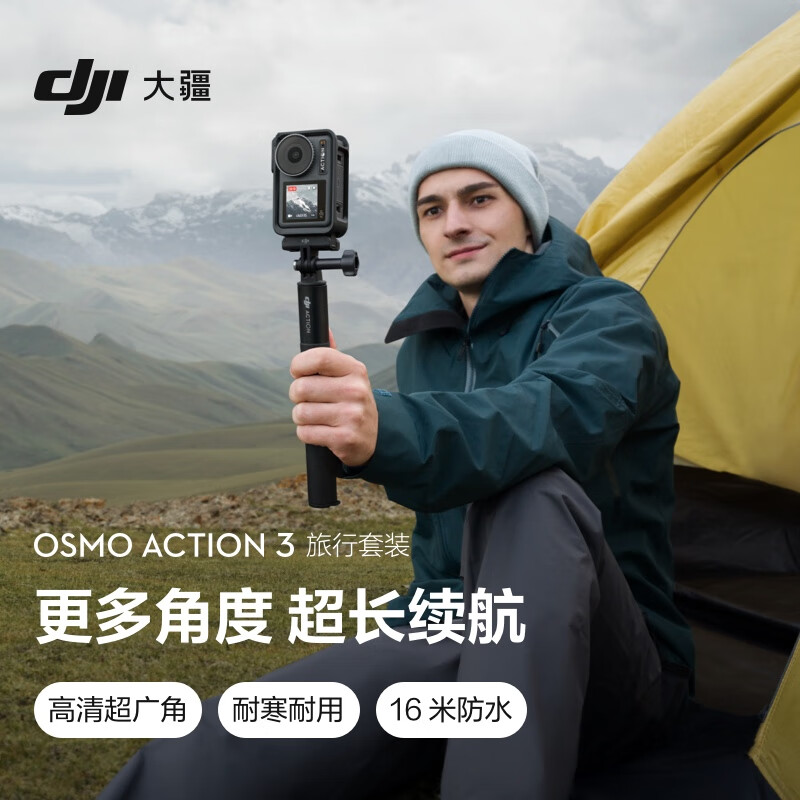 大疆 DJI Osmo Action 3 旅行套装 运动相机 户外露营旅游vlog摄像机便携式高清头戴相机+随心换2年版价格:2365.00元!