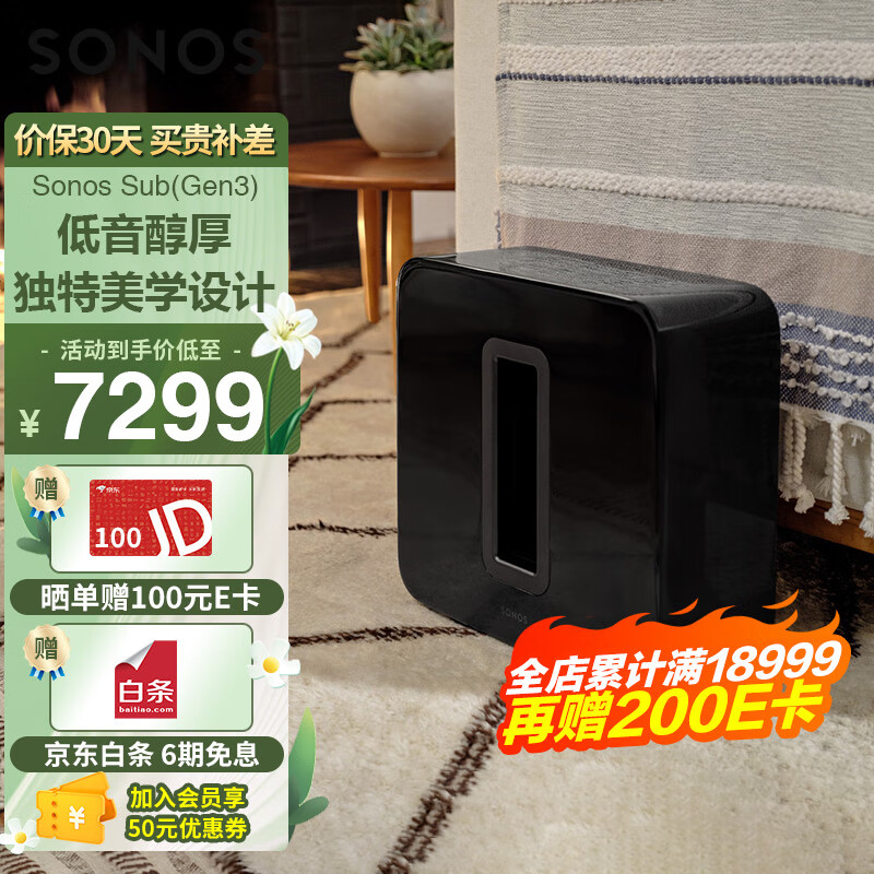 SonOS SUB G3 有源低音炮 WiFi无线可组合 电视音响 家庭音响 低音炮音箱 家用客厅 家庭影院 黑色价格:7299.00元!