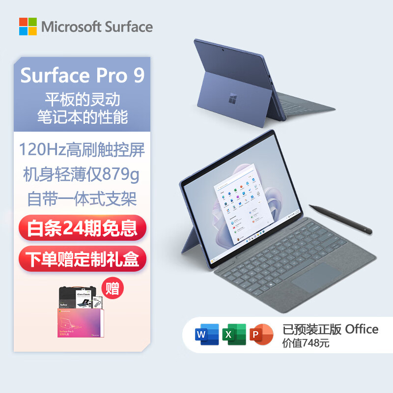 微软Surface Pro 9 宝石蓝+冰晶蓝带触控笔键盘盖i5 16G+256G 二合一平板电脑13英寸120Hz触控屏游戏本价格:12488.00元!