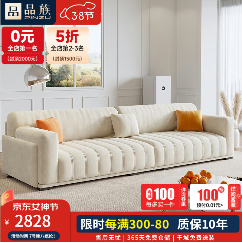 品族奶油风防猫抓绒沙发客厅小户型钢琴键直排沙发AZ-188 3.0米五a价格:3788.00元!