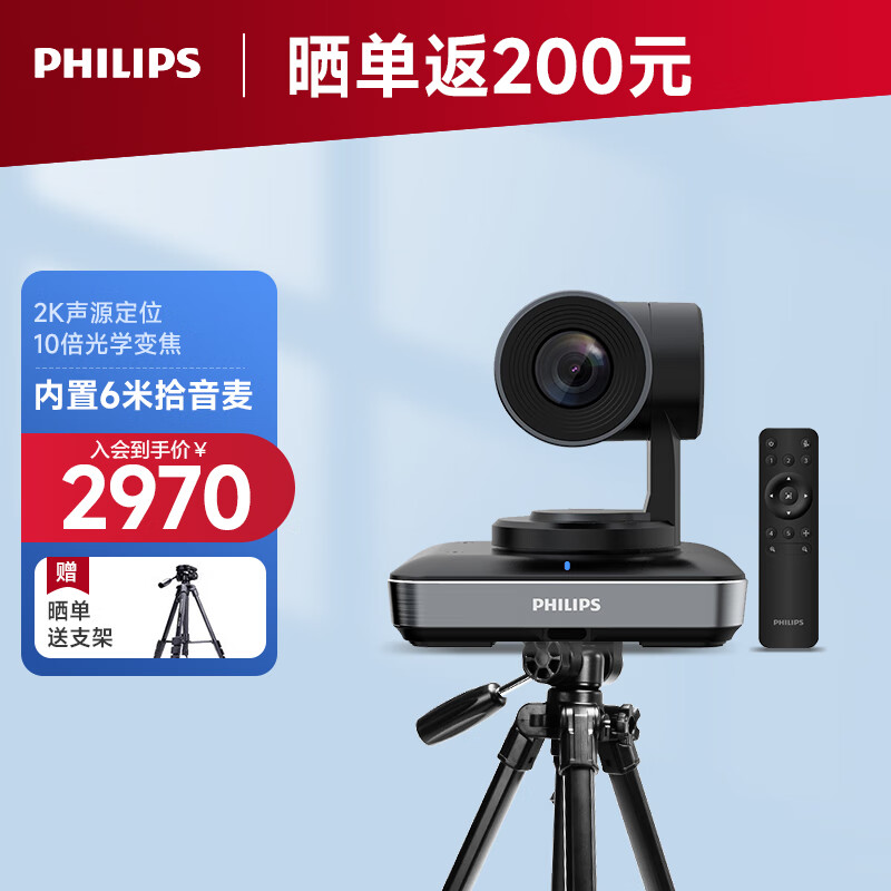 飞利浦电脑摄像头 10倍变焦 360°云台定位 2K高清视频会议摄像头USB电脑笔记本台式机视频网课PSE0600价格:3500.00元!