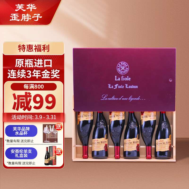 芙华(La Fiole)歪脖子红酒 法国原瓶进口 安赛伦干红葡萄酒整箱礼盒装 750ml*6支价格:839.00元!