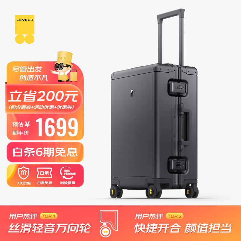 地平线8号(LEVEL8)行李箱男 商务20英寸密码旅行箱铝镁合金登机飞行家拉杆箱女 灰价格:1899.00元!