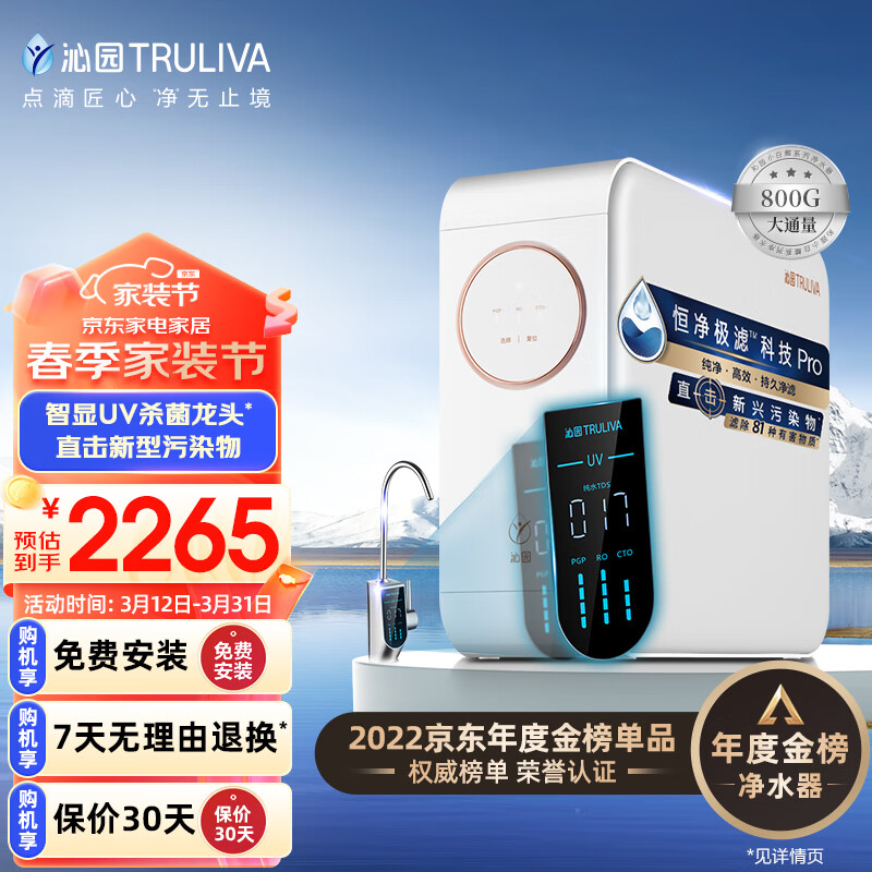 沁园(TRULIVA)小白鲸pro升级版800G智能家用净水器4年RO反渗透厨下直饮2.5L/分钟 UR-S5876i价格:2265.00元!