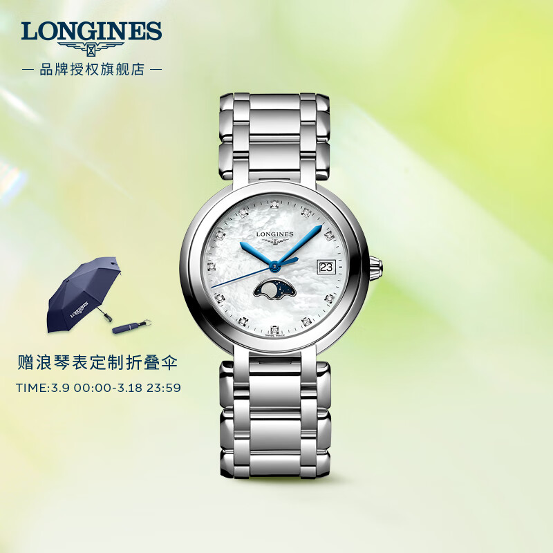 浪琴(LONGINES)赵丽颖推荐 瑞士手表 心月系列 月相石英钢带女表 L81164876价格:13300.00元!