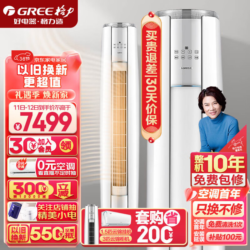 格力(GREE)空调 京东小家智能生态 3匹云锦-Ⅱ 1级能效 客厅空调立式空调柜机KFR-72LW/NhAg1BAj价格:7499.00元!