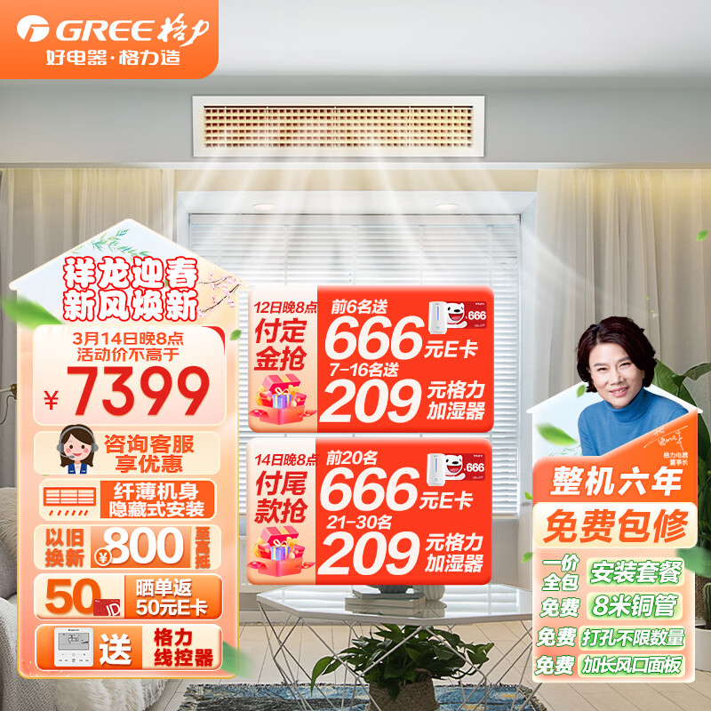 格力(GREE)中央空调 风管机一拖一 3匹家用嵌入式空调 直流变频FGR7.2Pd/C3Nha-N3 京仓派送(一价全包)价格:7199.00元!