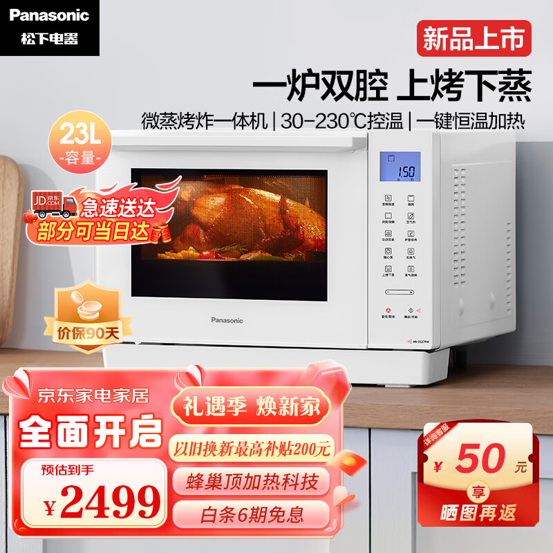 松下(Panasonic)微蒸烤炸一体机 23L家用台式变频微蒸烤 微波炉 烤箱 空气炸 蒸箱 万食炉 上烤下蒸 DS37价格:2499.00元!