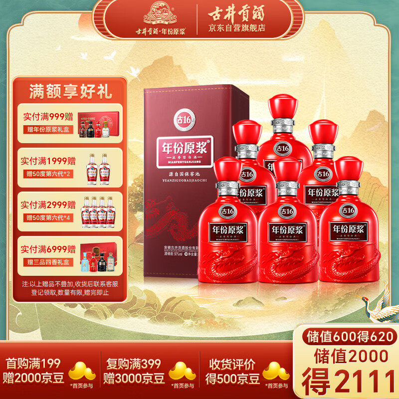 古井贡酒年份原浆 古16 浓香型白酒 50度500ml*6瓶 整箱装(内含礼品袋)价格:2964.71元!