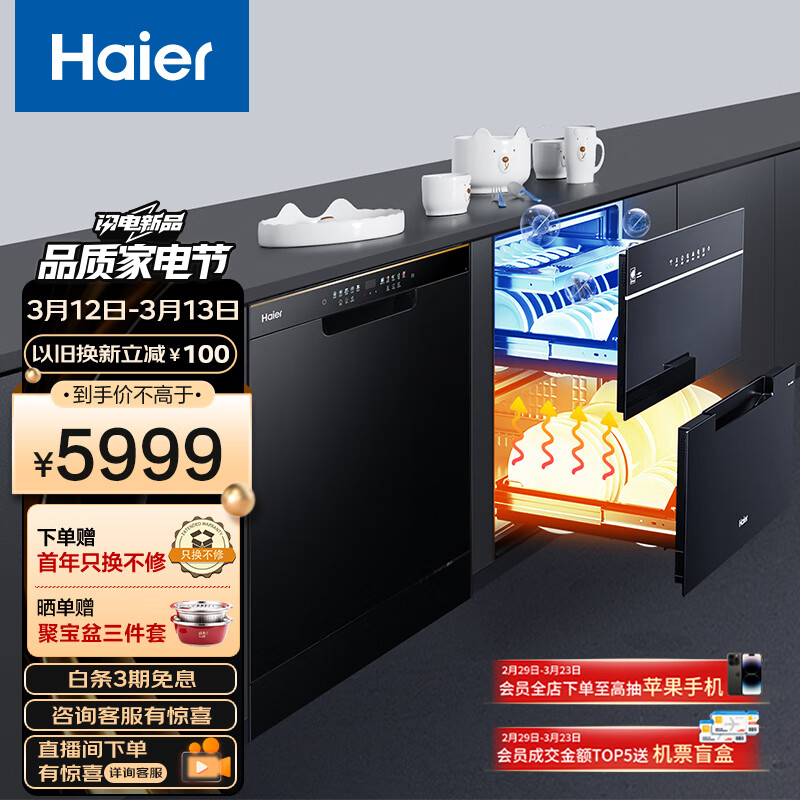 海尔(Haier) 消毒柜 洗碗机 115L大容量 三层嵌入式消毒碗柜E07JU1 15套晶彩系列嵌入式洗碗机一级能效价格:6666.00元!