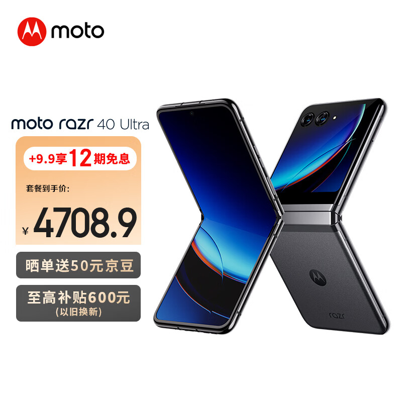摩托罗拉(Motorola)【+9.9享12期免息版】摩托罗拉 moto razr 40 Ultra 骁龙8+ 5G折叠屏8GB+256GB 锋雅黑价格:4708.90元!