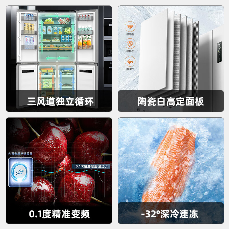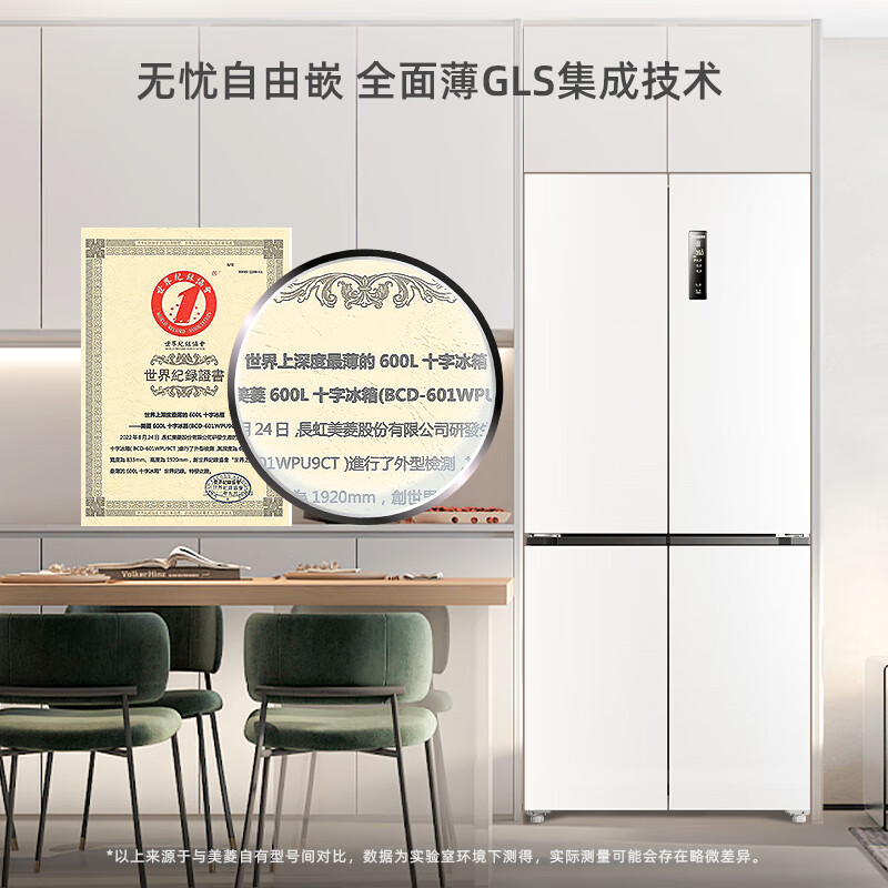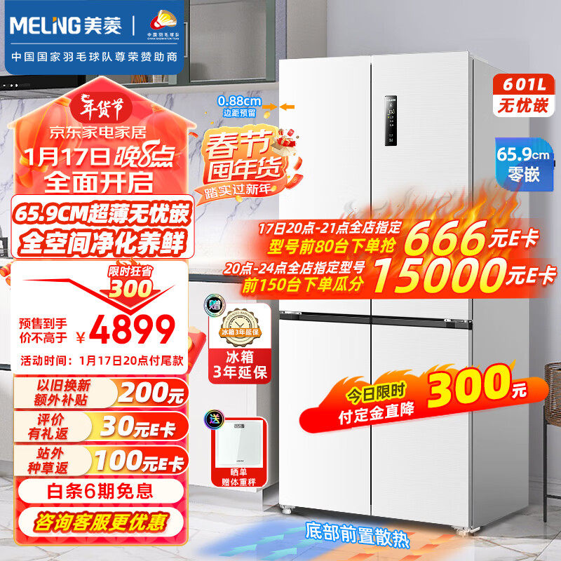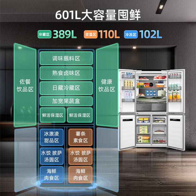 美菱(MeiLing)【无忧嵌】601升变频一级能效十字对开多门冰箱家用风冷无霜可嵌入式BCD-601WPU9CT超薄大容量白价格:5198.00元!