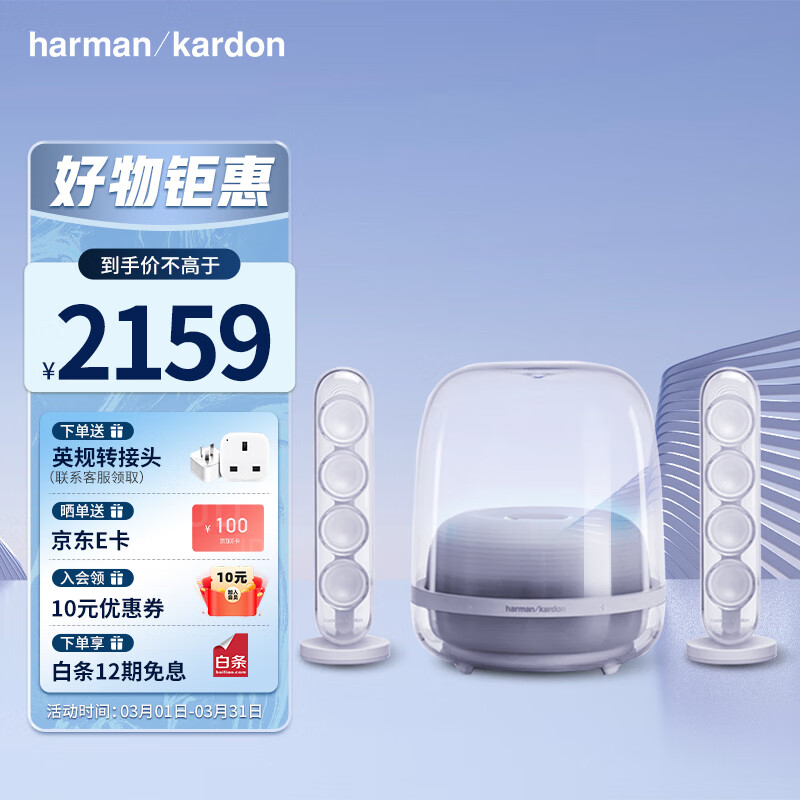 哈曼卡顿Harman/Kardon水晶四代 无线蓝牙桌面音箱 电视电脑音响 SoundSticks 4白色价格:2159.00元!