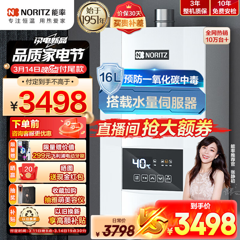 能率(NORITZ)16升燃气热水器天然气 全屋恒温 智控水伺服 下置风机 综合降噪 以旧换新GQ-16E4AFEX(JSQ31-E4)价格:3498.00元!