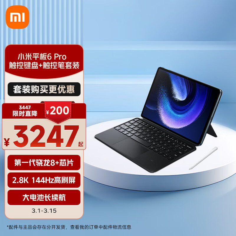 小米平板6Pro 11英寸 骁龙8+强芯 144Hz 2.8K 8+128GB移动办公娱乐平板电脑远山蓝【触控笔+键盘套装】价格:3247.00元!