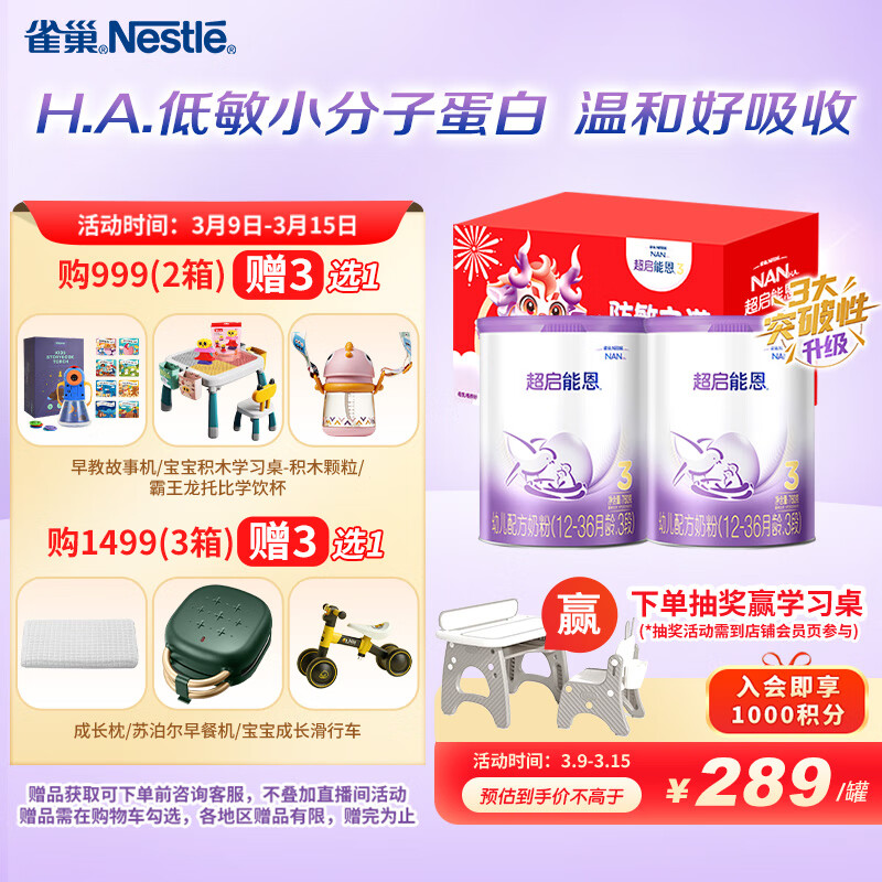雀巢(Nestle)超启能恩部分水解配方奶粉3段(12-36个月)760g*2罐龙年礼盒新升级价格:578.00元!
