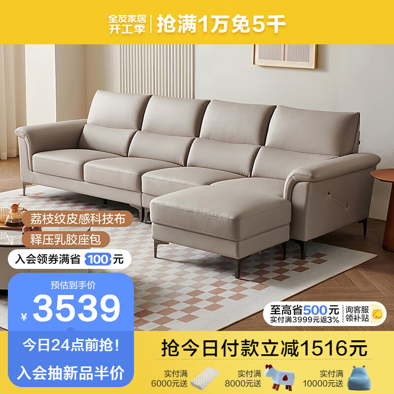 全友家居 现代简约科技布艺沙发客厅小户型直排家用四人位沙发102729价格:5055.71元!