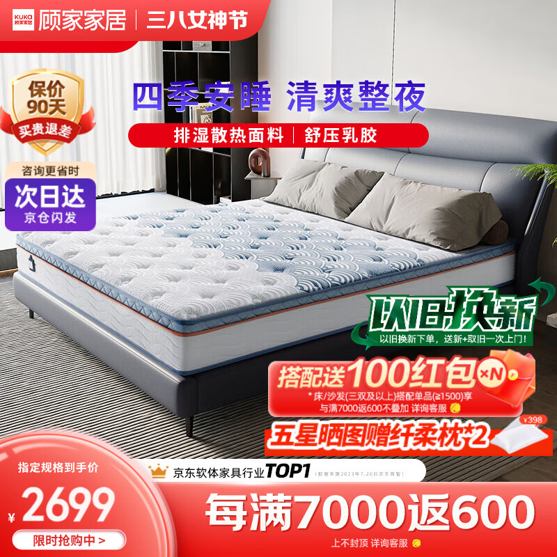 顾家家居(KUKA)排湿快干乳胶亚运床垫1.8米乳胶床垫透气垫M0099C 【京仓闪发】价格:2699.00元!